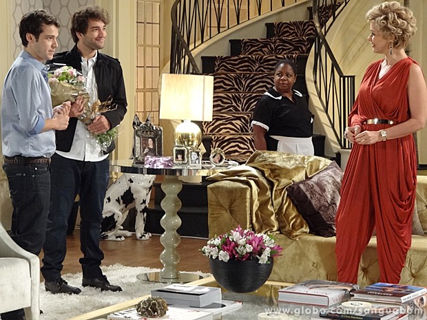 Fabinho (Humberto Carrão) não brinca em serviço. O bad boy deu um jeito de ser convidado para um jantar que Bárbara Ellen (Giulia Gam) oferece para a famíia de Maurício (Jayme Matarazzo). Até buquê de flores para a atriz ele leva. É muito profissional da cara de pau!